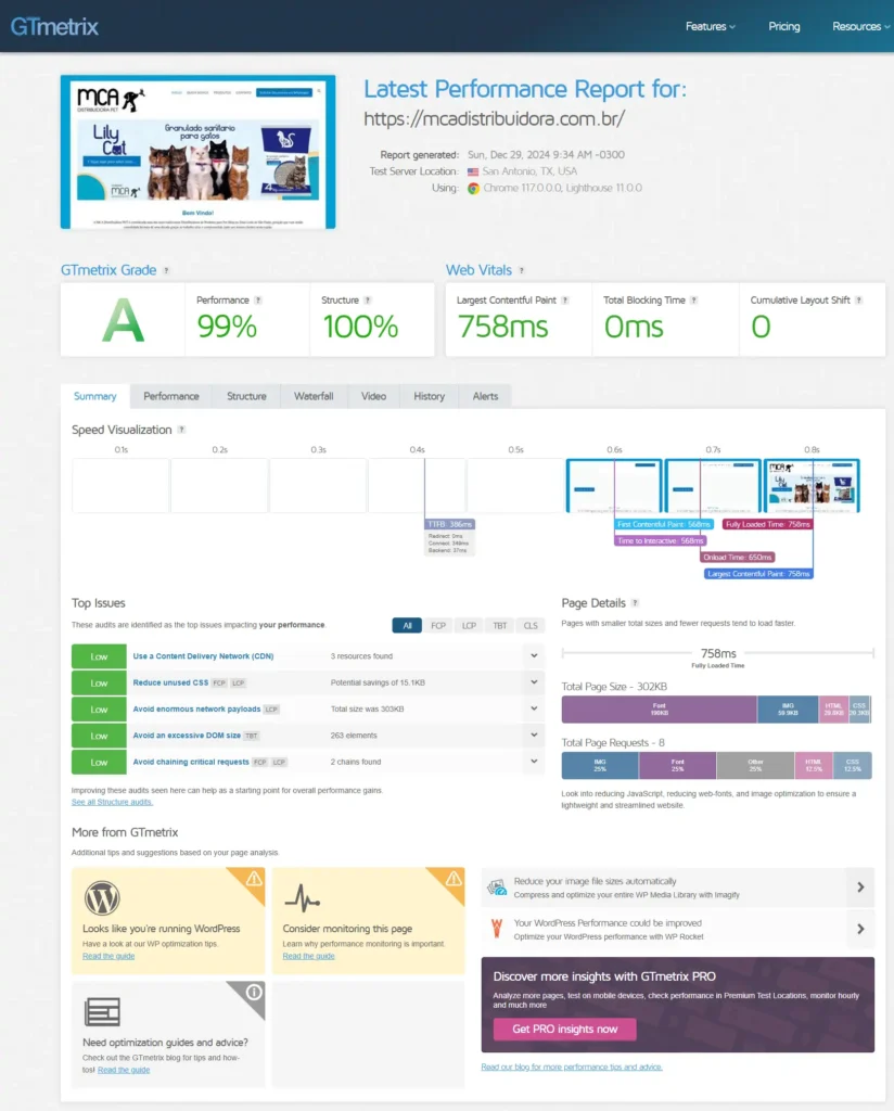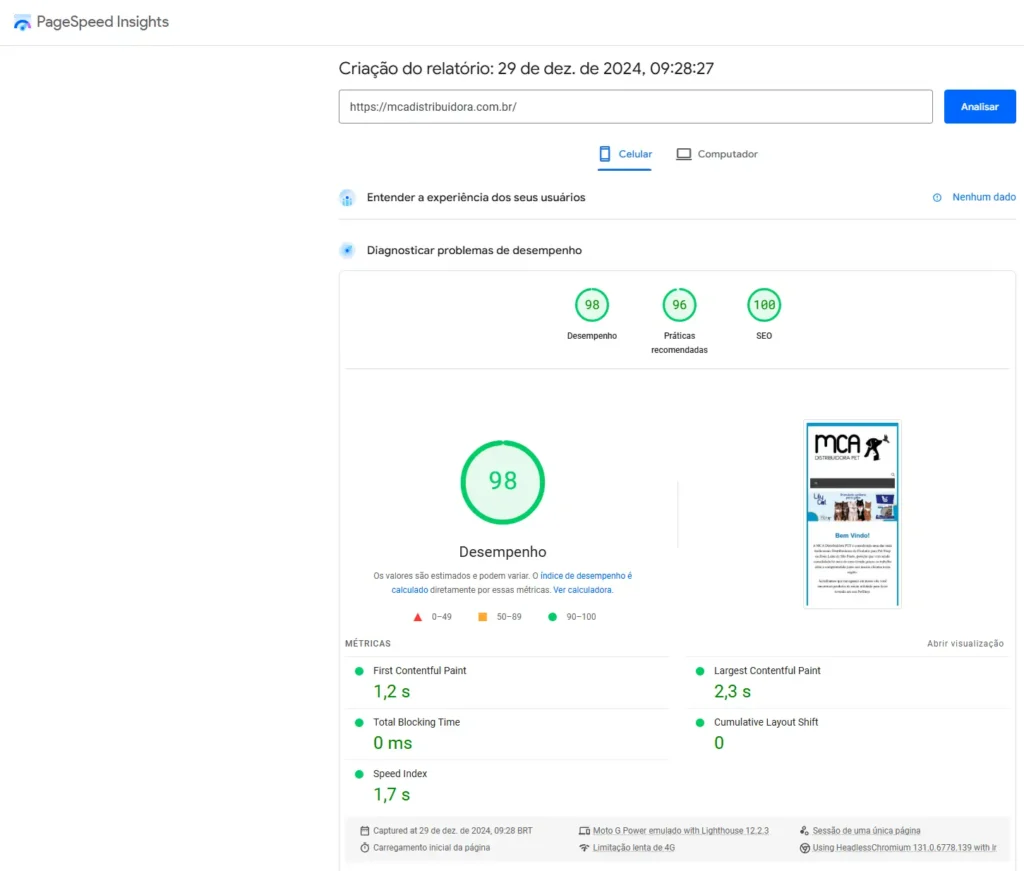 Teste de performance do site mcadistribuidora.com.br