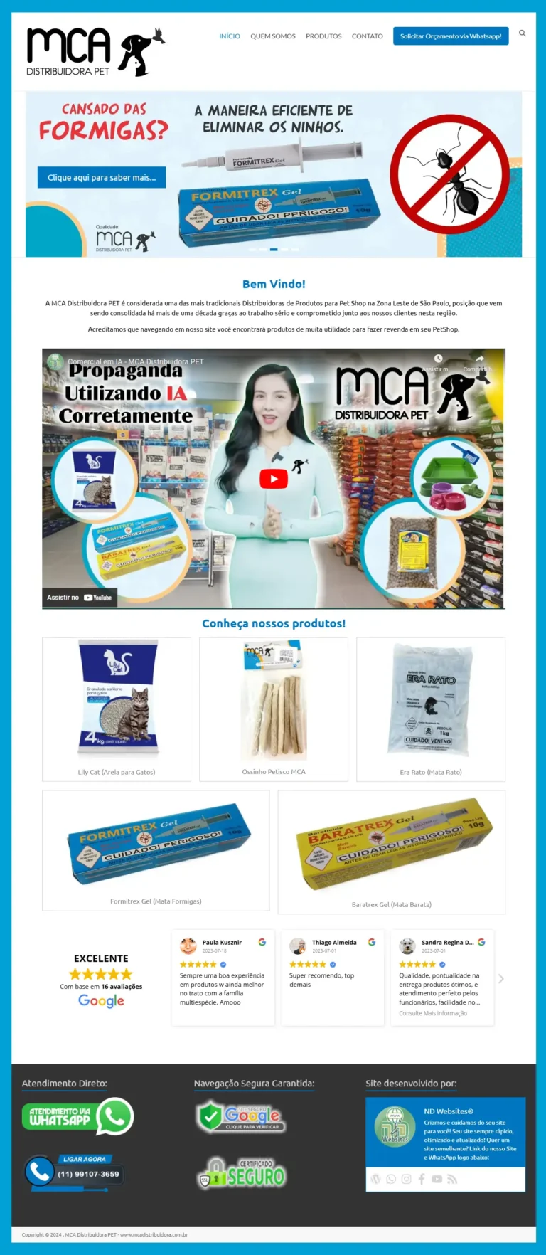 A MCA Distribuidora PET escolheu a ND Websites como parceira para desenvolver um site totalmente otimizado e mantido de forma estratégica. Desde a criação até a administração contínua, trabalhamos lado a lado para garantir que o site esteja sempre atualizado, seguro e funcional.