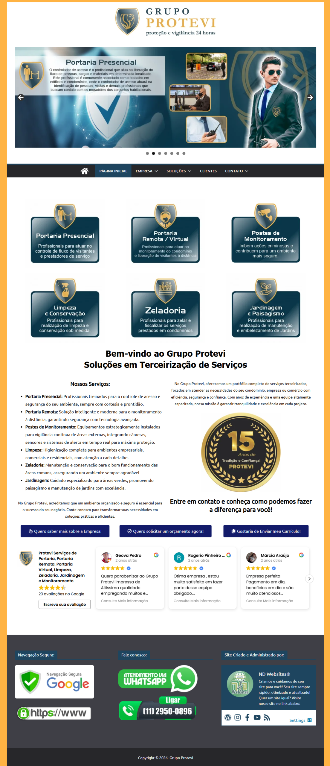 - Layout profissional baseado em modelo padrão da ND Websites